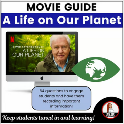 This movie guide will have students tuned in and recording important information from this engaging documentary. It's the BEST documentary for introducing students to climate change. It highlights how the earth has been impacted by climate change over the course of David Attenborough's lifetime (i.e. the last ~90 years) and the storytelling aspect of the film (complete with filmed footage from his works) really helps to drive home the changes that Earth has seen.