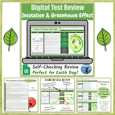 Try this engaging digital review activity after teaching your students about incoming solar radiation and the greenhouse effect! This self-checking activity is perfect to prepare your students for a test or as an Earth Day activity. The students demonstrate their understanding of the concepts by presenting their finished picture. This review activity is a great way to help students deepen their understanding in a fun and interactive way. The key is included.